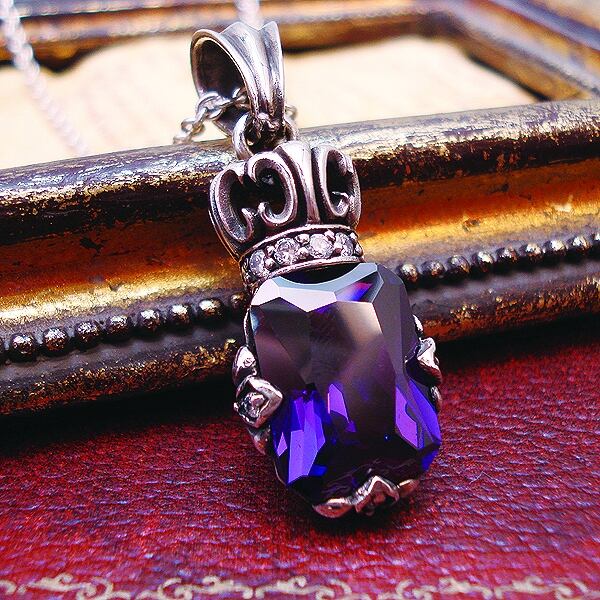 SILVER925 Pendant TOP -シルバー925 パープルジルコニア クラウン ペンダントTOP -