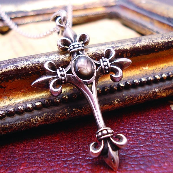 SILVER925 Pendant TOP -シルバー925 ブラックスター 百合の紋章 クロス ペンダントTOP -