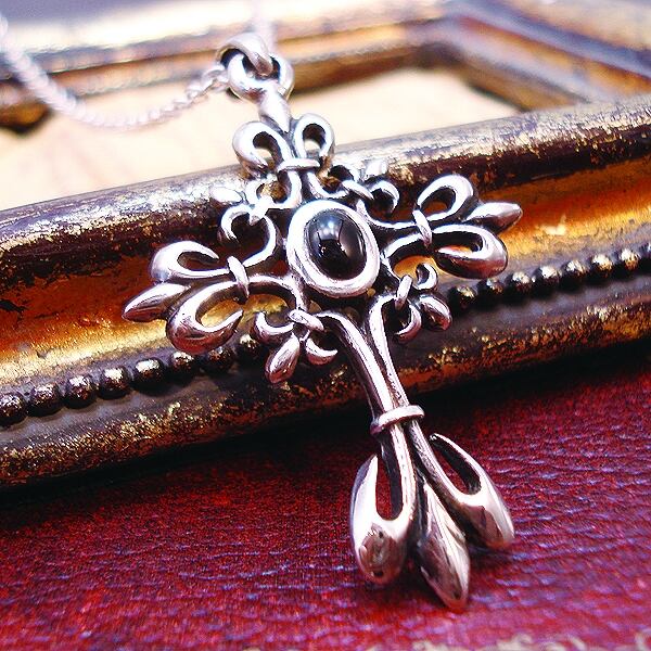 SILVER925 Pendant TOP -シルバー925 オニキス 百合の紋章 クロス ペンダントTOP -