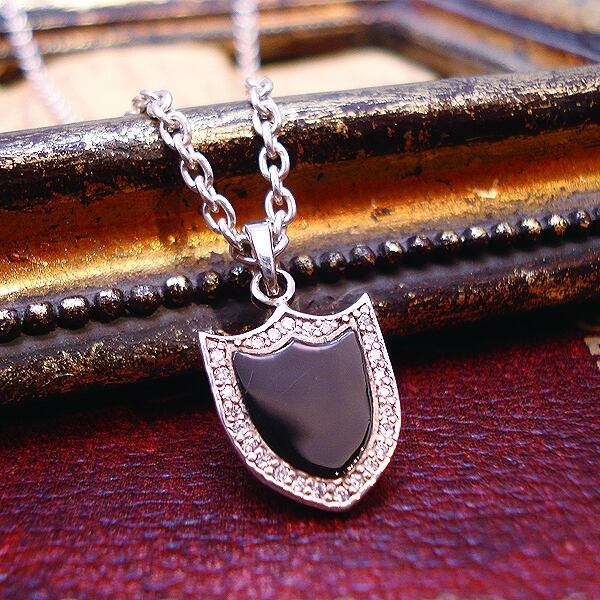 SILVER925 Pendant TOP -シルバー925 オニキス ジルコニア シールド ペンダントTOP -