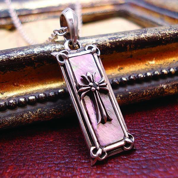 SILVER925 Pendant TOP -シルバー925 ブラックジルコニア シェル クロス プレート ペンダントTOP -