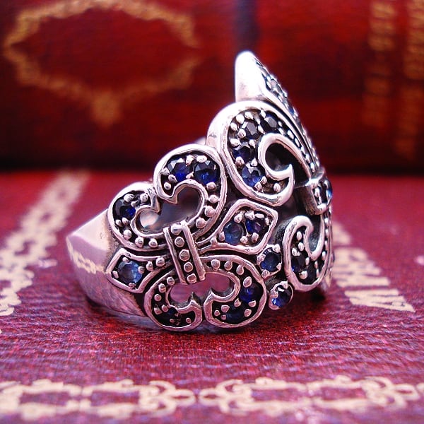 SILVER925 Ring -シルバー925 ブルージルコニア 百合の紋章 リング -